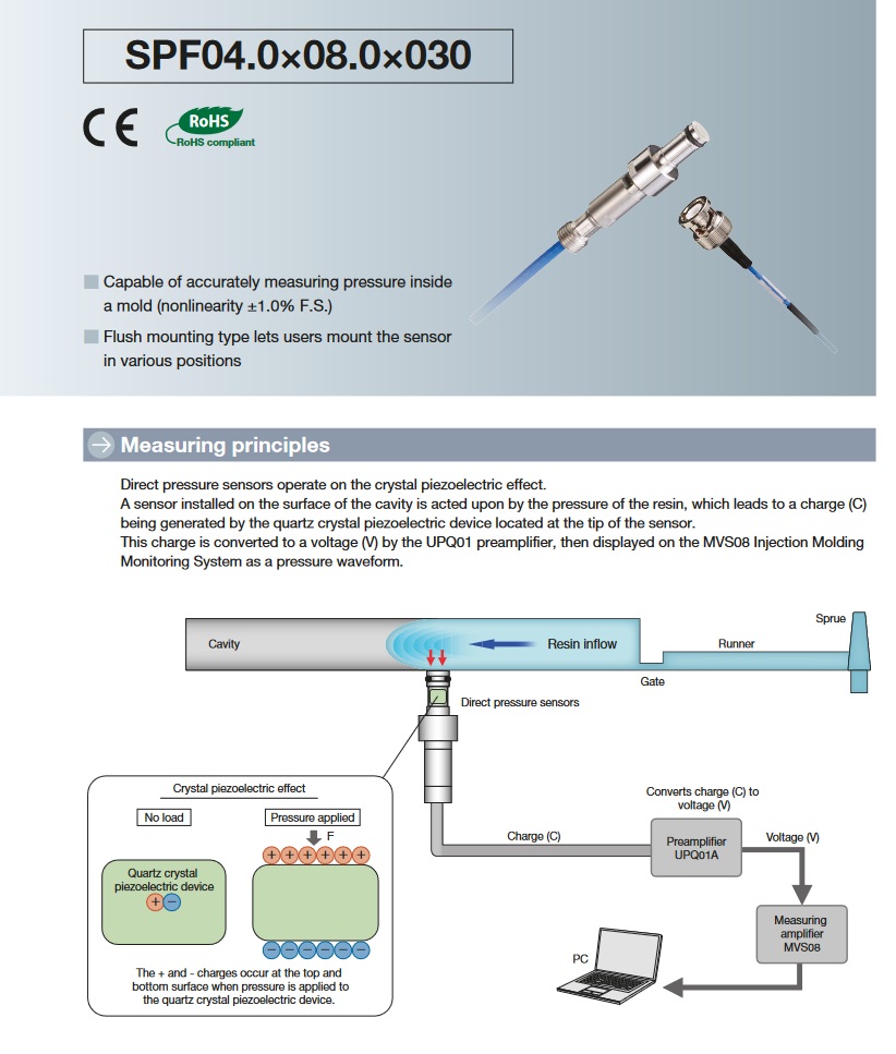 ■Capable of accurately measuring pressure inside a mold (nonlinearity ±1.0% F.S.)■Flush mounting type lets users mount the sensor in various positions