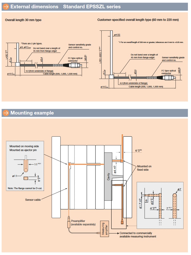 ■Ejector pin configuration allows easy installation on mold.*