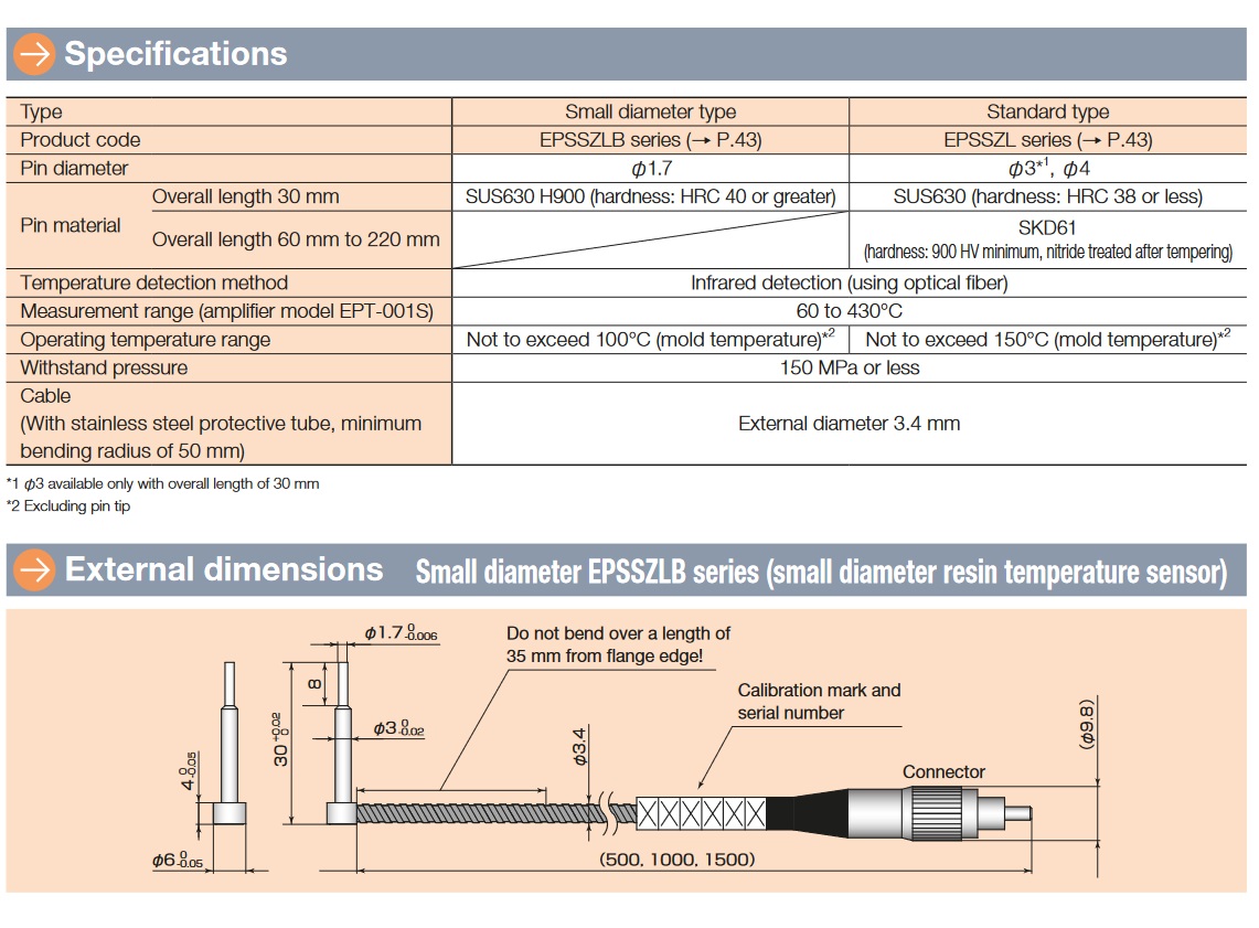 ■ Capable of measuring resin temperatures from 60°C to 430°C